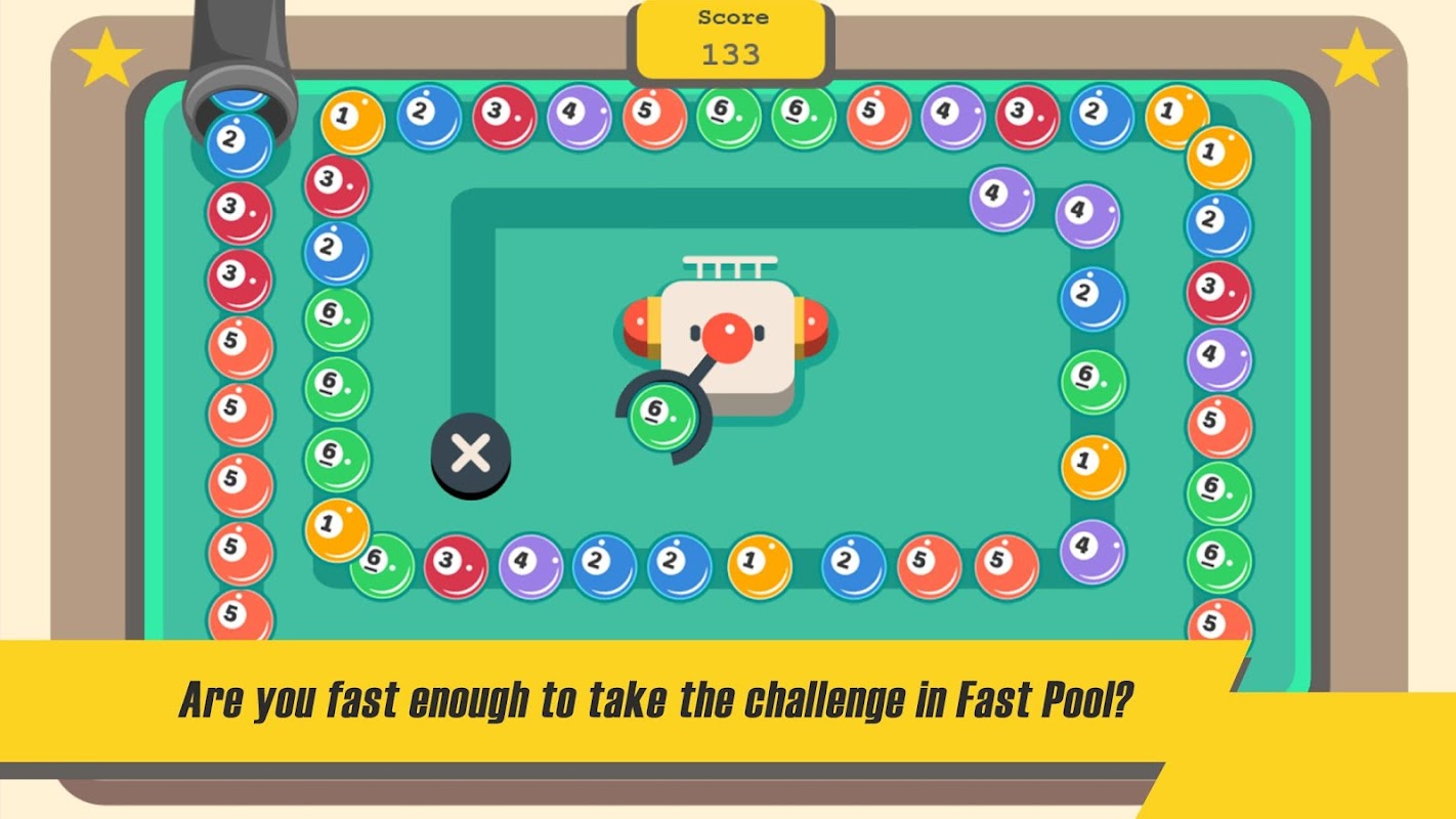 The sole task in this game is to survive at extremely fast speed train of billiards balls. The super speed is sure to make you dizzy and abashed. So, just take a deep breath, step into the full speed game and get as many scores as possible.