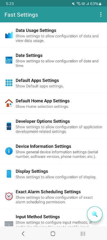 • Akses Pantas kepada Tetapan: Lancarkan tetapan terus dari dalam apl dengan hanya satu ketikan, menjimatkan masa dan usaha anda. Sama ada anda menukar kecerahan paparan atau mendayakan pilihan pembangun, semuanya tinggal beberapa ketikan lagi.