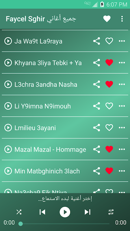 يتضمن التطبيق جميع أغاني الشاب فيصل الصغير التالية :