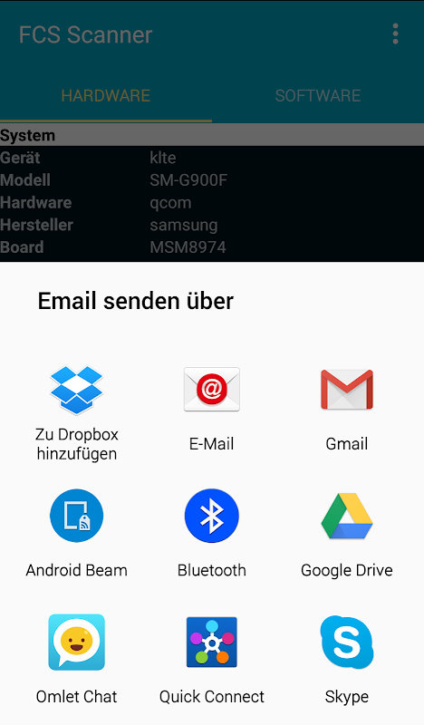 Aplikasi ini (terdapat di Jerman dan Inggeris) mengimbas telefon pintar atau tablet dan bekalan anda dengan perkakasan dan perisian maklumat terperinci anda: