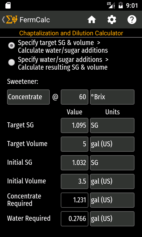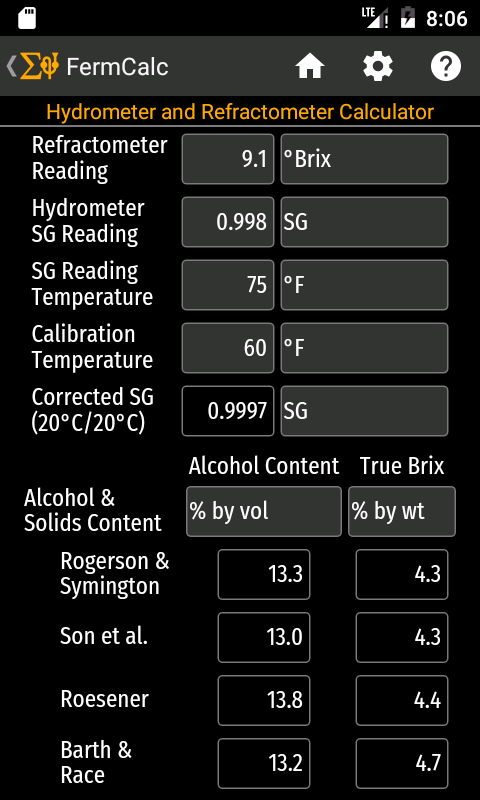 FermCalc menyediakan fleksibiliti penuh untuk menyatakan kedua-dua unit output input dan pada semua daripada kalkulator. Kesemua fungsi Java dan JavaScript versi popular FermCalc adalah termasuk dalam versi Andrioid itu.