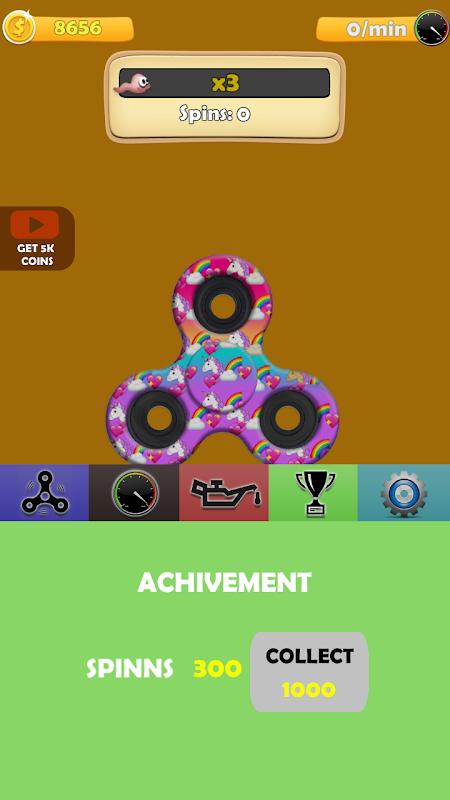 You have 5 swipes to give maximum rotation to your fidget spinner and set a new spin record. Swipe left/right with finger to spin your fidget and wait for it to stop and swipe to collect spin reward. Swipe properly to achieve maximum spins and collect maximum reward. Compete your friends by setting and beating max spin record. Unlock more spinners and upgrade your finger fidget spinners to achieve maximum spin.