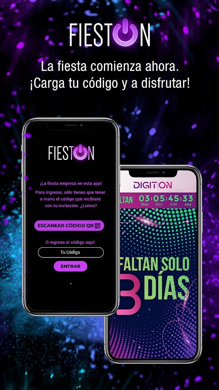 APP FiestÓN adalah eksklusif untuk acara yang mempunyai teknologi ini. Anda hanya boleh menggunakan APP dengan kod yang disertakan dalam jemputan anda.