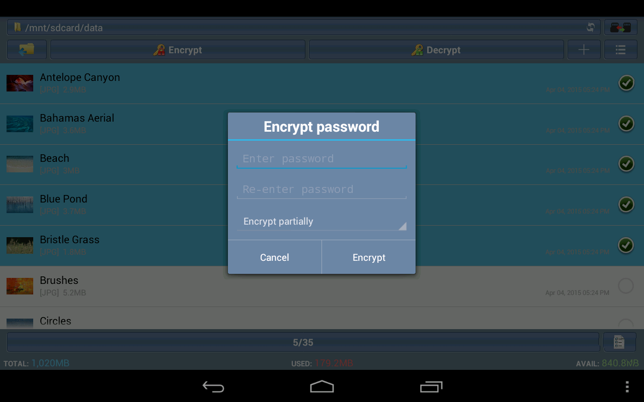 File Protector is a file manager, that offers a comfortable and secure way to keep files with confidential data encrypted using AES encryption 256bit/128bit/40bit/partially(recommend for huge file), so you don't have to worry about your data any more.