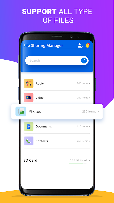 Fast file sharing manager supports transferring all kinds of files across different mobile devices on the same network or remotely. Internet connectivity is now not an issue at all when you want to transfer data or share it with your friends, no matter where they are because you can send files anywhere!