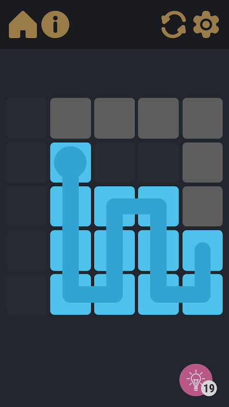 Objektif: Matlamat anda adalah untuk mengisi setiap petak pada papan permainan dengan melukis garisan melalui setiap satu. Tahap selesai setelah semua petak diwarnakan. Anda boleh berundur untuk melaraskan pergerakan anda, tetapi matlamat utama adalah untuk mengisi papan sepenuhnya.