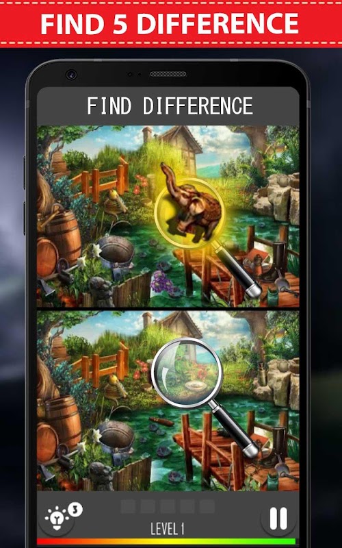 - Spot as many as five difference between two pictures to complete the level and unlock the new levels from the 50 levels.