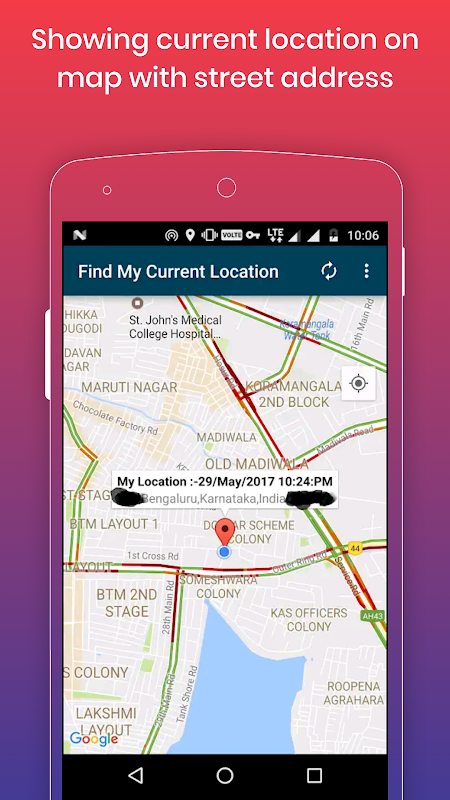 Anda boleh mencari lokasi semasa anda dengan alamat jalan dengan menggunakan aplikasi ini.