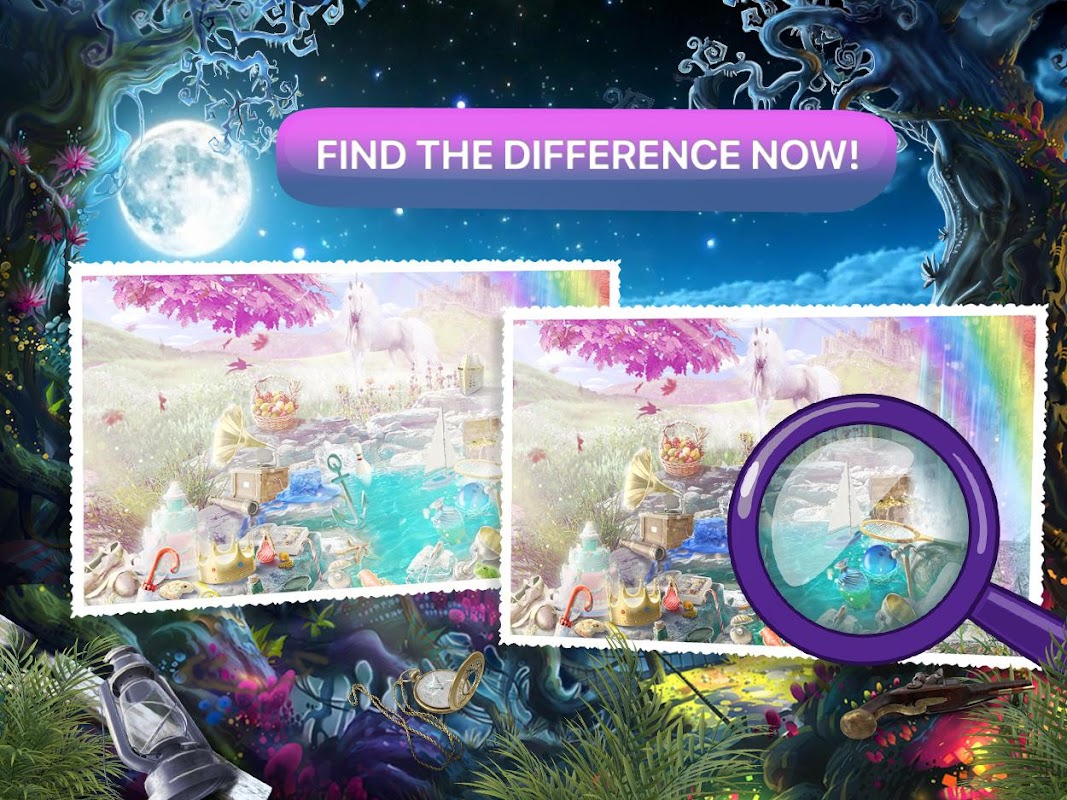 Cari perbezaan aplikasi dengan gambar unicorn yang cantik