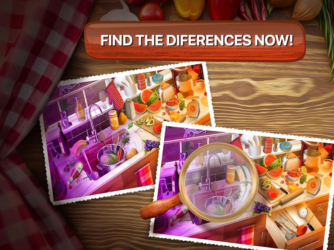 Are you ready for the most interesting find the differences game app? Let the fun begin with our Find The Differences Game 🔍 Kitchen Life. This find the differences puzzle game will help you to practice your observation skills and cognitive abilities in one unique and fun way. You need to focus and concentrate to find what is the difference between two pictures that look absolutely identical. If you like cooking, then we are sure that you will enjoy in our spot the differences game with amazing kitchen pictures. Install the best find the difference game and start playing today!