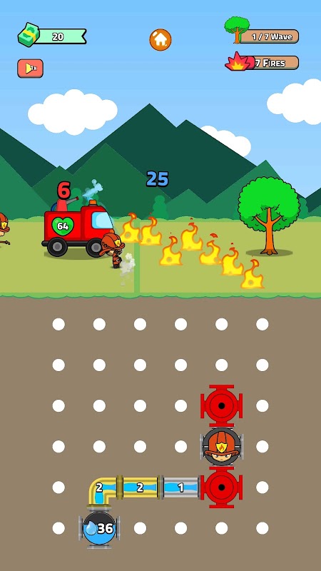 Bina sistem pemadam kebakaran terbaik dalam RPG teka-teki ini! Sambungkan paip pada grid 6x6 untuk meningkatkan tekanan air trak bomba anda dan memadamkan api yang marak sebelum terlambat!