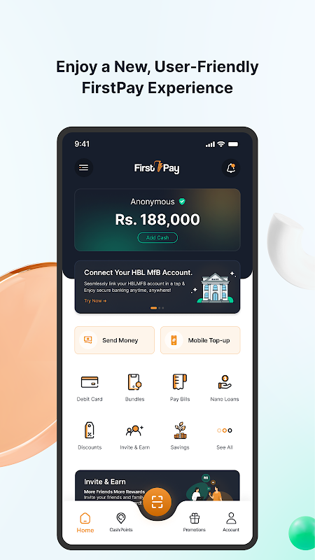 FirstPay, dompet mudah alih yang dikuasakan oleh HBL Microfinance Bank hadir untuk memberi anda Perbankan sebenar di luar pengalaman Cawangan. Dengan satu ketikan, kini hantar dan terima wang, memautkan akaun HBL Mfb, akses pinjaman dengan pelan pembayaran yang fleksibel, bayar bil utiliti dan selesaikan tambah nilai mudah alih untuk mana-mana rangkaian, dari mana-mana sahaja, pada bila-bila masa!