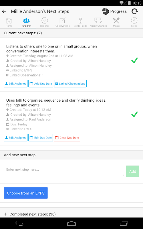 • The recording of observations for Learning journals (EYFS and CoEL)