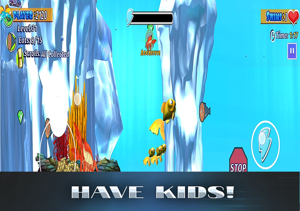 Haiwan Laut Akuatik Terokai Lautan Di Luar Sebuah Fishbowl. Suap dan kembangkan dengan Mengumpul Permata Pengalaman. Bermain dengan ikan 3d Watak yang mempunyai personaliti Ikan mereka yang sangat unik.