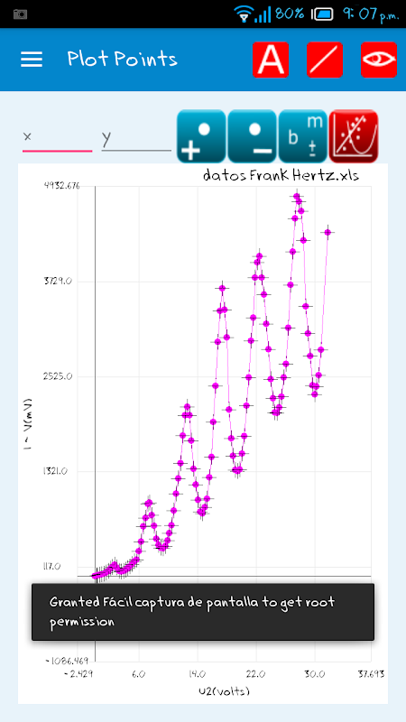 * Titik graf (X ± dx, Y ± dy) dengan bar ralat.
