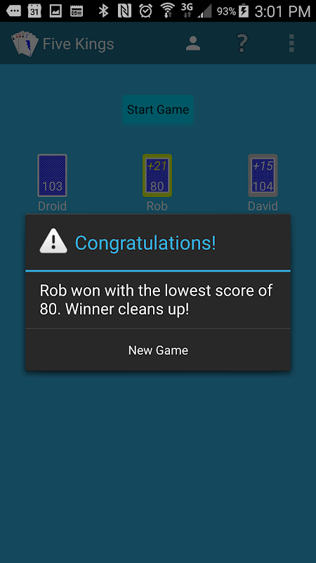 Sound difficult? Fortunately Five Kings has five (of course) game difficulties from Beginner (where the game helps you play and gives you hints) to Challenging (where your on your own against the Expert). The Easy opponent may throw you wild cards half the time, but you'll need all your skills and strategy to beat the Expert consistently.