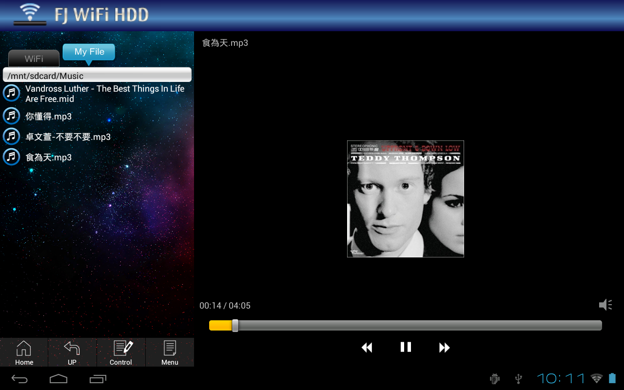Digunakan WiFi menyambung kepada peranti jauh (nama FJ_WiFi_HDD), dan senarai kandungan peranti jauh, dan memaparkan kandungan ini.