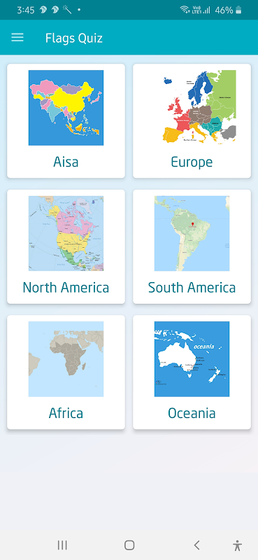 Flags are grouped into continents, and each continent has many levels that start easy and becomes hard as each level completes.
