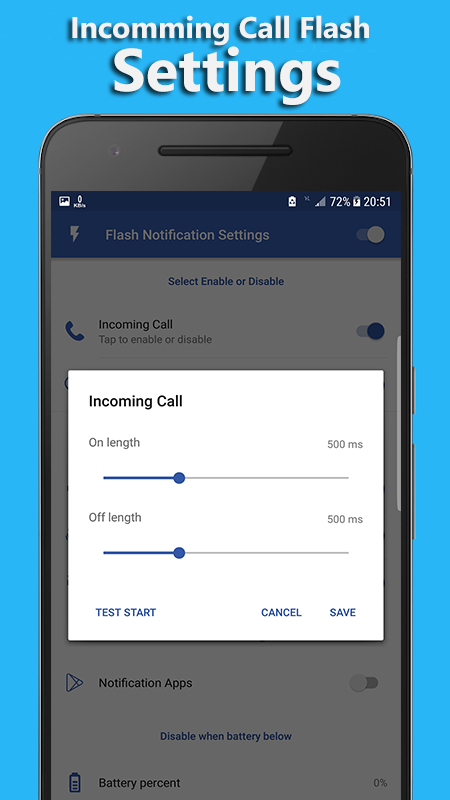 ✔ Set flash alerts ON or OFF time for call alerts and sms flash alerts notifications
