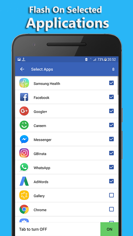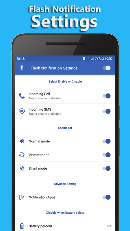 ✔ Turn ON or OFF all the blink flash alerts with a single tap