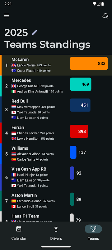 Apabila musim sedang berlangsung, kalendar untuk tahun semasa mungkin tertakluk kepada perubahan kerana perlumbaan dibatalkan atau dijadualkan semula. Oleh itu, data mungkin gagal muncul dalam apl selepas perlumbaan selesai atau acara kalendar yang akan datang mungkin tidak tepat. Kami akan berusaha untuk menyelesaikan masalah ini secepat mungkin!