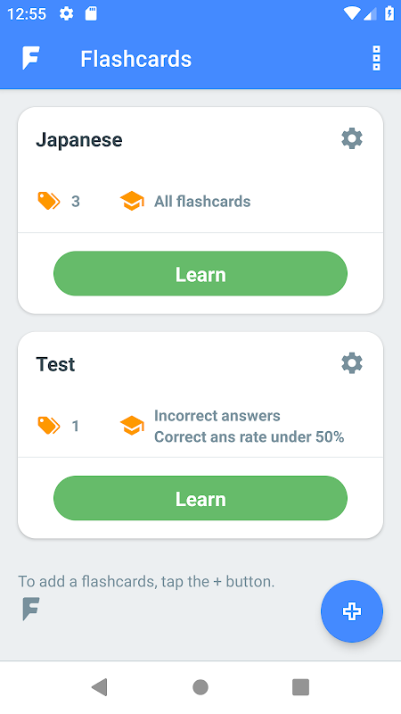 Dalam mod pembelajaran berdasarkan kadar jawapan yang betul, anda boleh mengkaji secara intensif hanya flashcards yang anda tidak baik.