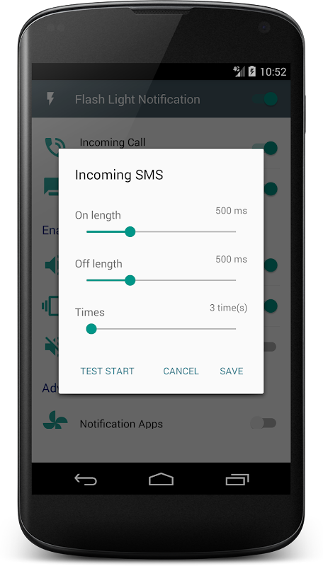 - Flashlight Notification on Call and SMS has Material design UI, nice and easy to use.