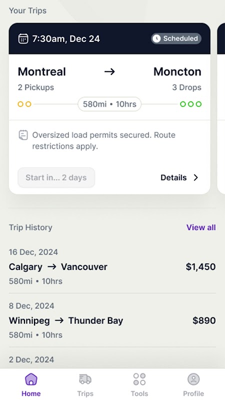 Senarai & Butiran Perjalanan: Lihat senarai lengkap muatan tersedia (TRIPS) pada skrin utama anda. Ketik pada perjalanan untuk menyemak butirannya dan mulakan perjalanan anda dengan mudah.