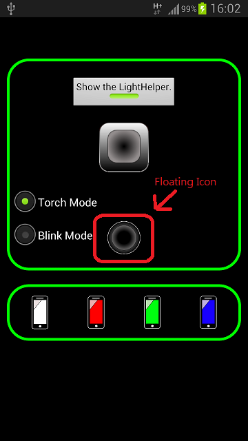 A flashlight app can be set to torch mode or blink mode.