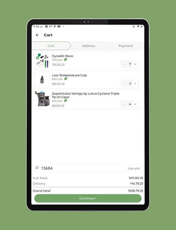 Zamawiaj produkty z flowrolls.pl oraz zbieraj punkt lojalnościowe za Twoje zakupy. Możesz zbierac punkty bezpośrednio za zamówienia z aplikacji oraz stacjnonarne w sklepie. Jeżeli udało Ci się uzbierać punkt wcześniej na flowrolls.pl napisz do nas, a przeniesiemy Twoje punkti bezpośrednio do aplikacji.