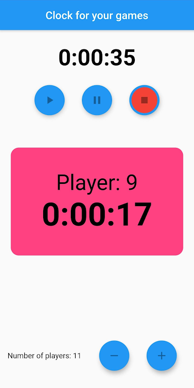 Multiplayer chess clock for board games. Each player has a stopwatch.