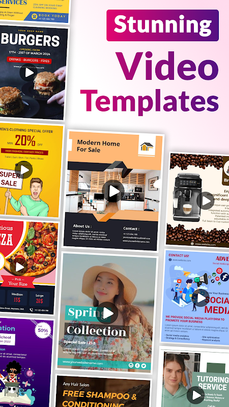 Buat iklan video anda sendiri, risalah promosi, risalah parti, risalah hari jadi dan risalah acara dengan templat poster video kreatif dan pereka risalah. Cepat & Mudah Digunakan.