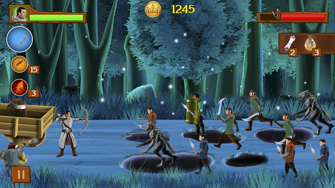 • Wide choice of weapons: Bows, Arbalests, knives, freeze bombs and fire potions, and special archery skills;