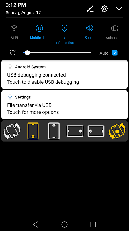 Angkatan lanskap atau mod potret untuk telefon dengan sensor orientasi yang rosak.