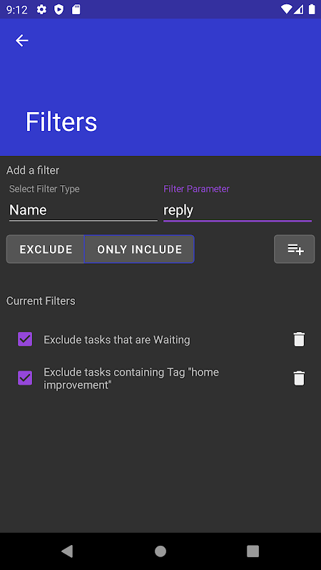 - Menyaring tugas dengan memasukkan atau mengecualikannya berdasarkan sifatnya
