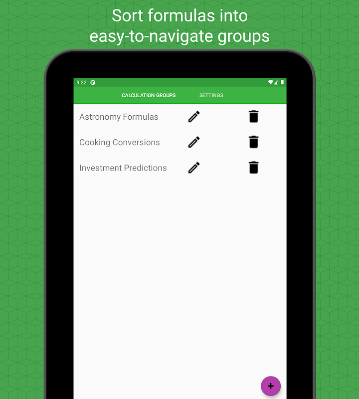 • Kumpulan pengiraan: Kumpulkan formula untuk berkongsi pemboleh ubah biasa. Masukkan nilai pemboleh ubah sekali dan lihat hasil semua formula dalam kumpulan.