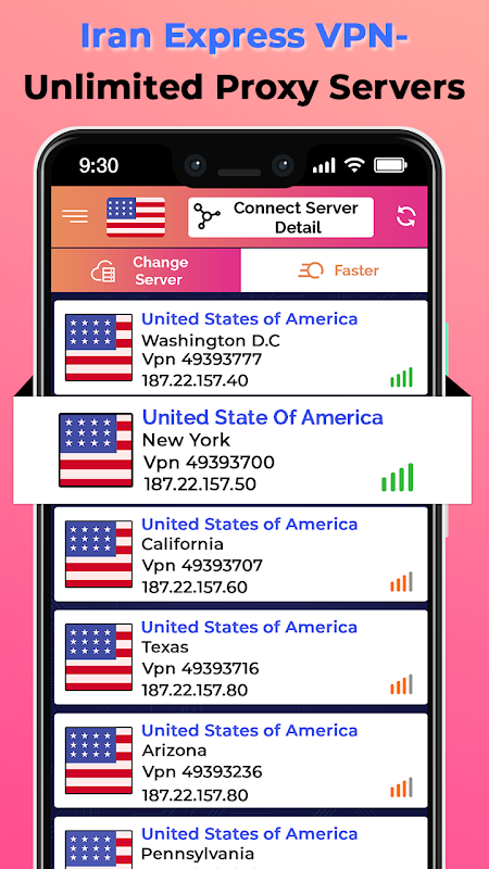 Enjoy and Protect your Privacy with free of cost using Free Iran Vpn-Secure Proxy Server. if you like application don't forget to share and rate us..!!