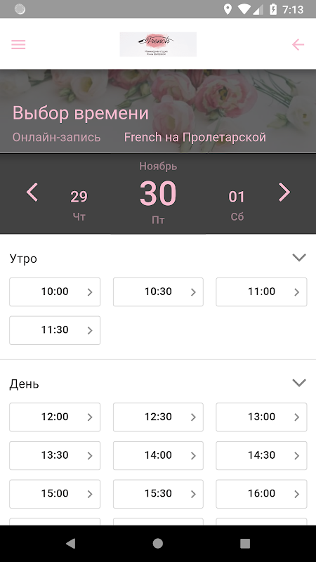 Мобильное приложение Маникюрной студии FRENCH в Барнауле.