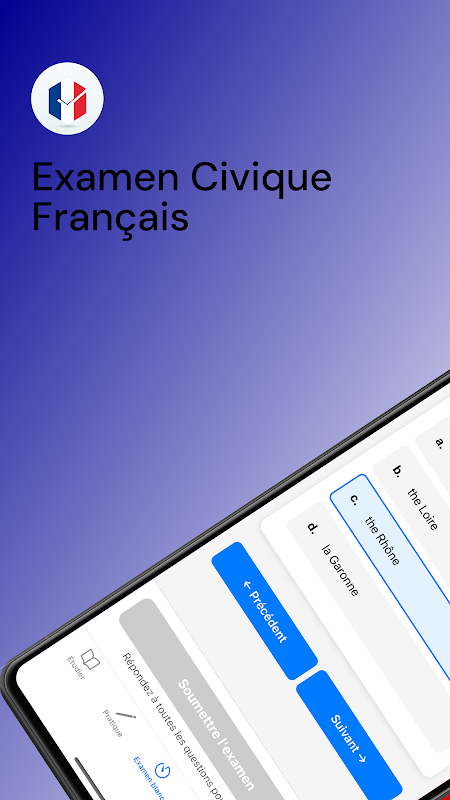 Bersedialah untuk ujian kewarganegaraan Perancis dengan soalan latihan yang realistik, peperiksaan olok-olok yang komprehensif, dan maklum balas yang jelas.