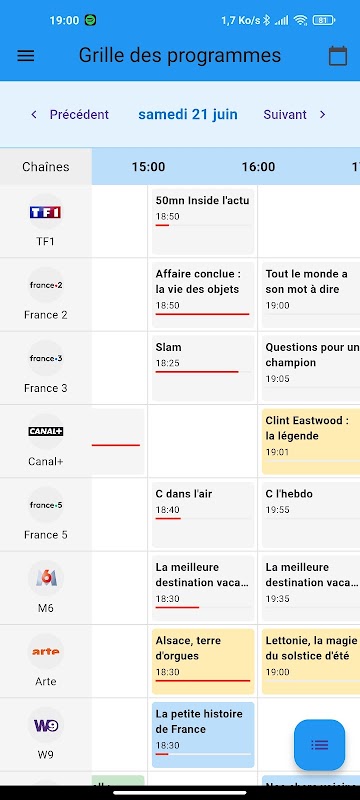 🗓️ Nikmati panduan TV lengkap, yang dianjurkan mengikut hari dan mengikut saluran. Semak masa tayangan, ringkasan filem dan siri, dan jangan sekali-kali terlepas satu perlawanan atau acara. Antara muka yang ringkas dan praktikal untuk merancang malam TV anda dengan mudah.