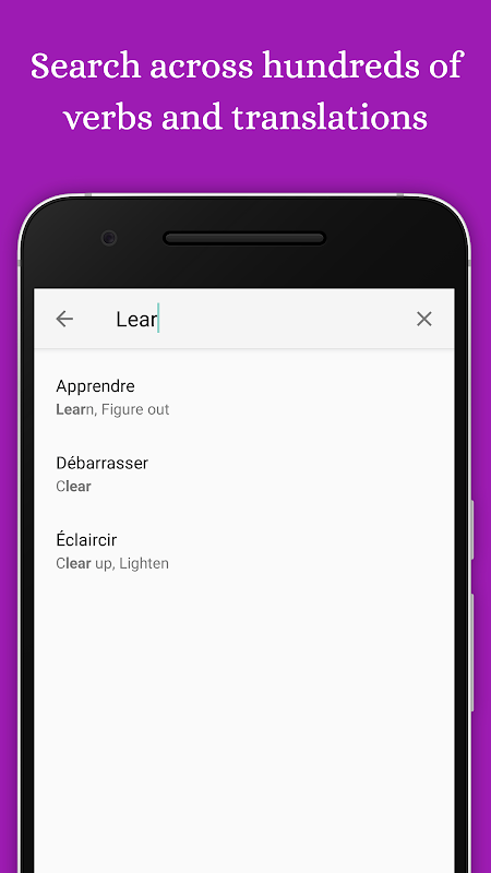 Berhenti bergelut dengan mengingati kata kerja yang betul atau konjugasi yang betul semasa anda mempelajari kata kerja Perancis dan bercakap bahasa Perancis dengan fasih. Kuasai bidang bahasa yang mencabar ini dengan Guru Kata Kerja Perancis. Sesuai untuk semua orang yang ingin belajar bahasa Perancis untuk memudahkan perjalanan mereka di Perancis, Belgium, Switzerland, Quebec dan negara penutur bahasa Perancis yang lain.