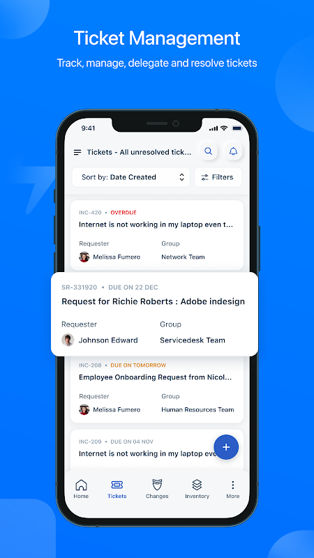 Ciri utama aplikasi mudah alih Freshservice