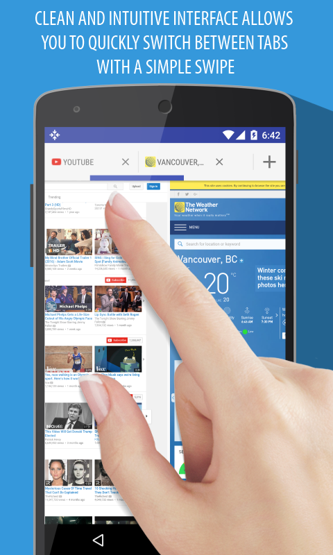Penyemak imbas tab berciri pantas dan penuh dengan sokongan video HTML5, penyekat pop timbul dan penukaran ejen pengguna