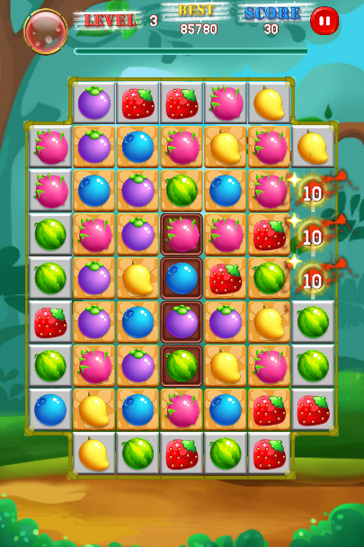 Swipe Matching 3 or more identical match Fruit Candy Sweet to score