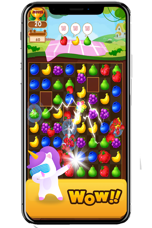• Hanya leret untuk memadankan tiga atau lebih buah-buahan untuk mengumpulnya!