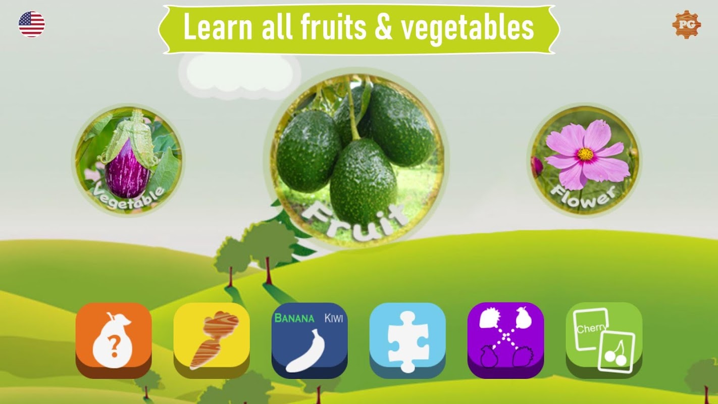 "Buah-Buahan dan Sayuran untuk Kanak-kanak - Teka-teki Flashcards" adalah aplikasi pendidikan