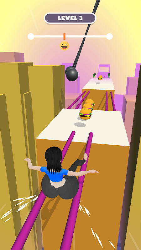 Eat Burgers to grow in size! Avoid obstacles and slide on poles!