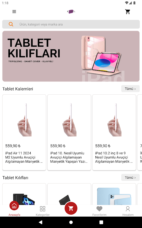 Anda boleh temui semua jenis produk yang terlintas di fikiran apabila menyentuh tentang aksesori tablet dalam aplikasi mudah alih e-fuchsia.com. Sarung, pelindung skrin, papan kekunci dan banyak aksesori lain membolehkan anda menggunakan tablet anda dengan lebih cekap. Selain itu, terima kasih kepada bank kuasa dalam aplikasi kami, anda tidak akan kehabisan bateri. Anda boleh mencari produk yang paling sesuai dengan keperluan anda dengan mudah dengan pilihan bank kuasa kami dengan kapasiti dan ciri yang berbeza.