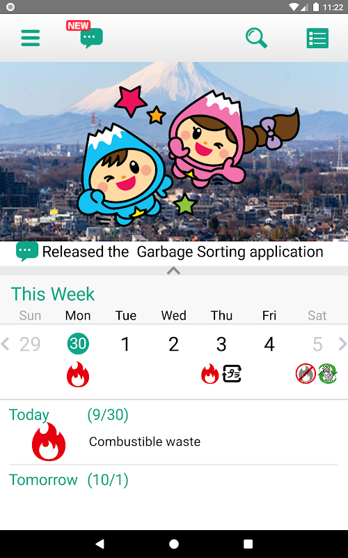 Aplikasi yang termasuk maklumat yang berkaitan dengan sampah, seperti jadual pengumpulan sampah, prosedur untuk membuang sampah, langkah berjaga-jaga yang perlu diambil semasa membuang sampah, kamus pengisihan sampah, dan soalan lazim, telah dikeluarkan. Anda boleh menyemak maklumat dengan mudah dengan telefon pintar berguna anda.