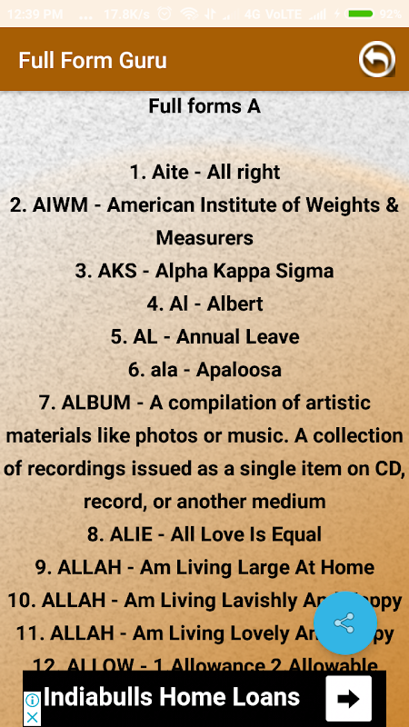 This app have latest "Full Forms" of many useful word which is related to general knowledge , science, history , geography etc.